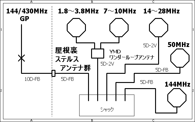 | 5種類のYMBワンダーループアンテナで 1.9/3.5/3.8/7/10/14/18/21/24/28/50/144MHz カバーできました。