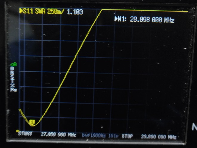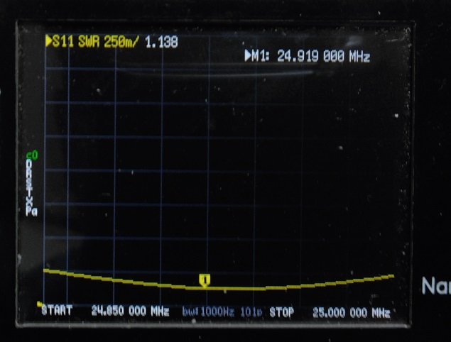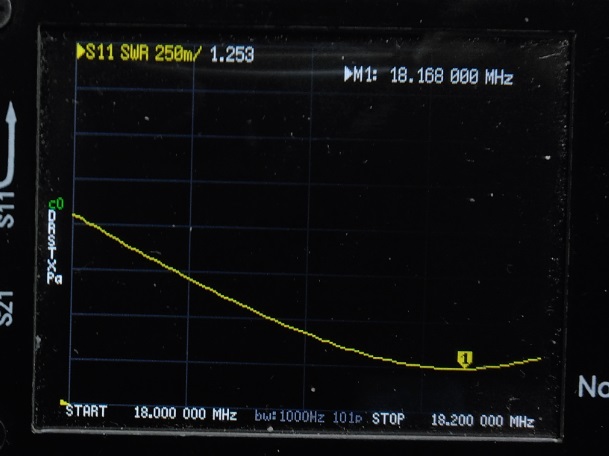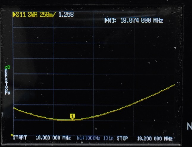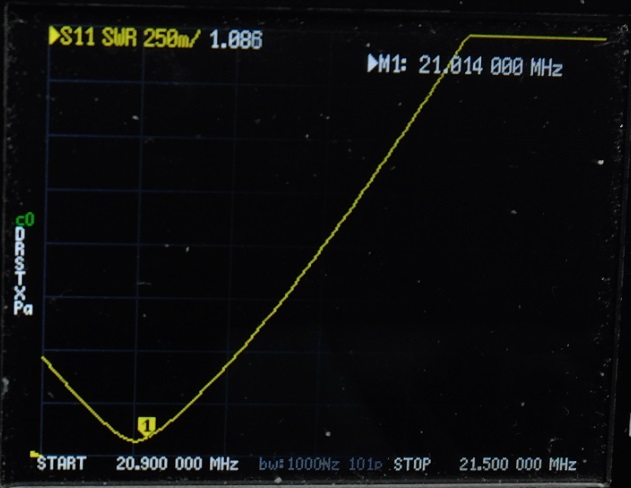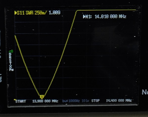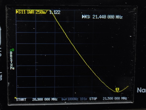 | 2mループにワンダーループアンテナの整合部を接続して nanoVNAでSWRを測定してみました。 ![]() なかなか いい感じです。 バリコン容量150PF以内で同調すればSWR1.2くらいになりそうです。 実験では10MHz帯~28MHz帯までSWR1.25以下になりました。 実際にリモートコントロールできるように ボリューム付ギアモーターをバリコンに接続して屋根裏に設置 (最大出力は出力5Wまで・・・) ![]() 70PFのバリコンを使用したのですが少し容量が足りなかったので 同軸ケ^ブルの端切れで20PFくらいのコンデンサを作り接続しました。 これで14MHz~28MHzまで同調できるようになりました。 コントローラーはスイッチで切替えて 「1.9MHz/3.5MHz/3.8MHz」・「7MHz/10MHz」・「14MHz/18MHz/21MHz/24MHz/28MHz」)共用しています・・・ (屋根裏に切替BOXを置いてスイッチ(リレー)で切替ています) ![]() anoVNAでSWRを測定してみました。