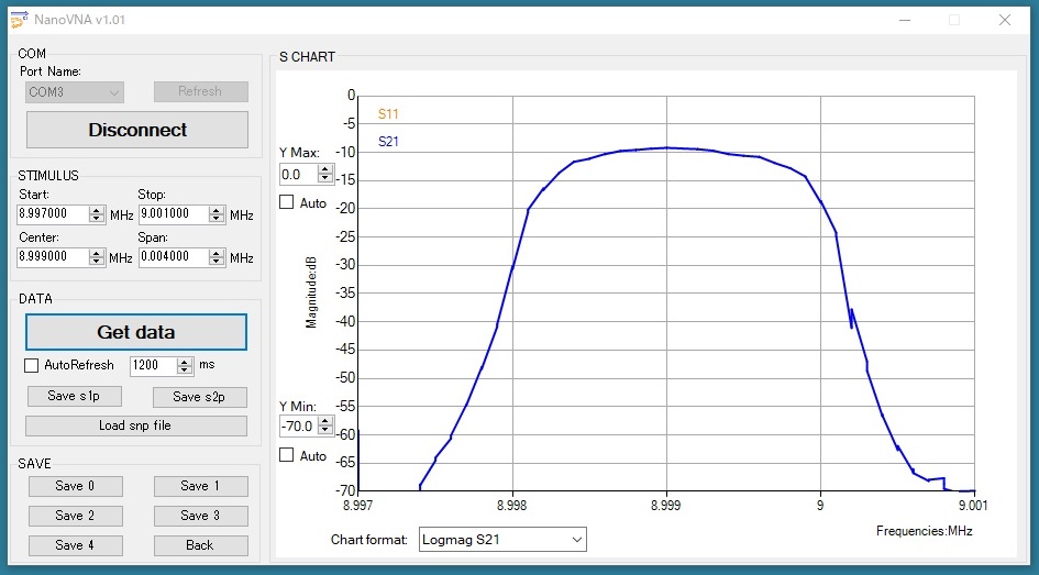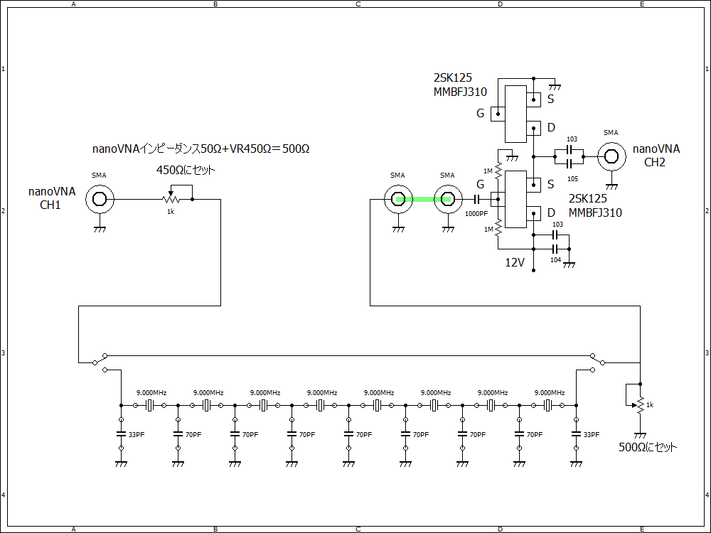 nanoVNAを使用して自作クリスタルフィルタの測定